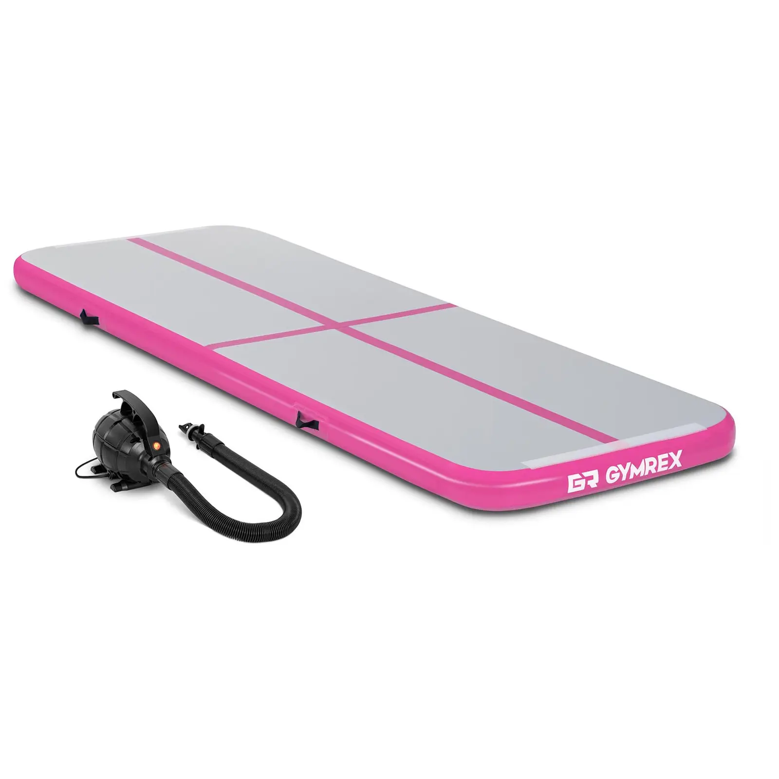 Nadmuchiwana mata gimnastyczna marki Gymrex z pompką to dobre rozwiązanie dla osób, które chcą połączyć bezpieczeństwo użytkowania z praktycznością i ciekawym designem produktu. Dla ułatwienia transportu została ona wyposażona w cztery nylonowe rączki do przenoszenia (po dwie z każdej strony).