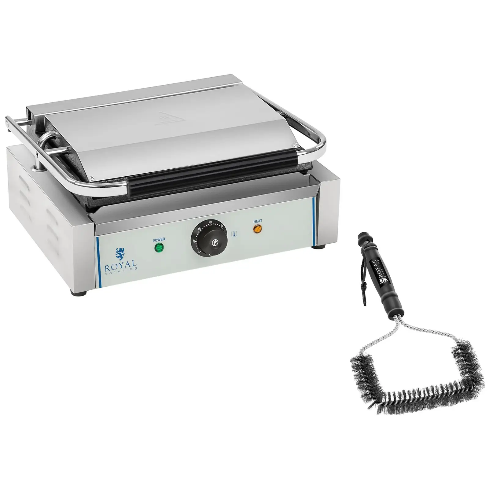Już dziś zamów grill kontaktowy ze szczotką do czyszczenia! Zestaw marki Royal Catering to niezbędny sprzęt do Twojej restauracji, baru szybkiej obsługi, smażalni, stoiska gastronomicznego czy food trucka.
