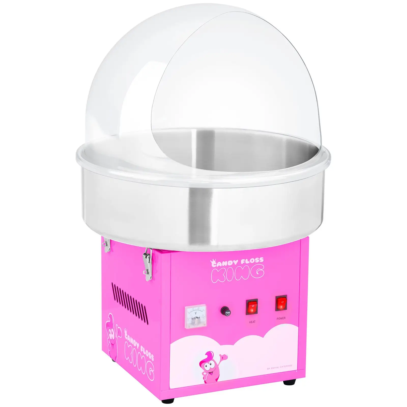 Maszyna do waty cukrowej jest idealna do bufetów z przekąskami, kin, na imprezy karnawałowe, festiwale itp. Posiada udogodnienia, które ułatwiają jej obsługę. Pokrywa ochronna o średnicy 52 cm została wykonana z trwałego szkła akrylowego. Pomaga utrzymać optymalną temperaturę waty oraz zabezpiecza ją przed czynnikami zewnętrznymi. Przezroczysta osłona pozwala prezentować kolorowy przysmak i przyciągać uwagę klientów.