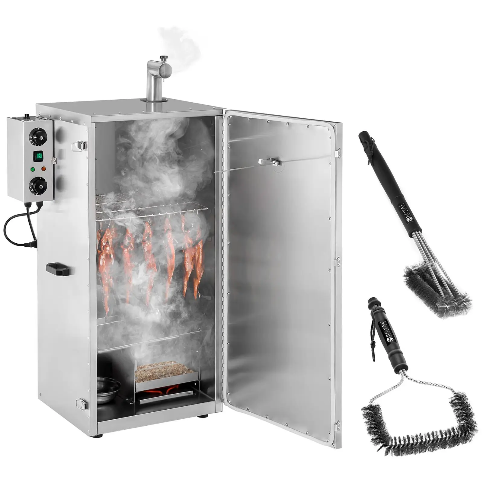 Efektywna funkcjonalność urządzenia marki Royal Catering jest zasługą zarówno obszernej komory wędzarniczej o pojemności 70 litrów, jak i czterech wyjmowanych rusztów. W efekcie użytkownik ma możliwość jednoczesnego przygotowywania wielu wędzonych specjałów o różnych rozmiarach.